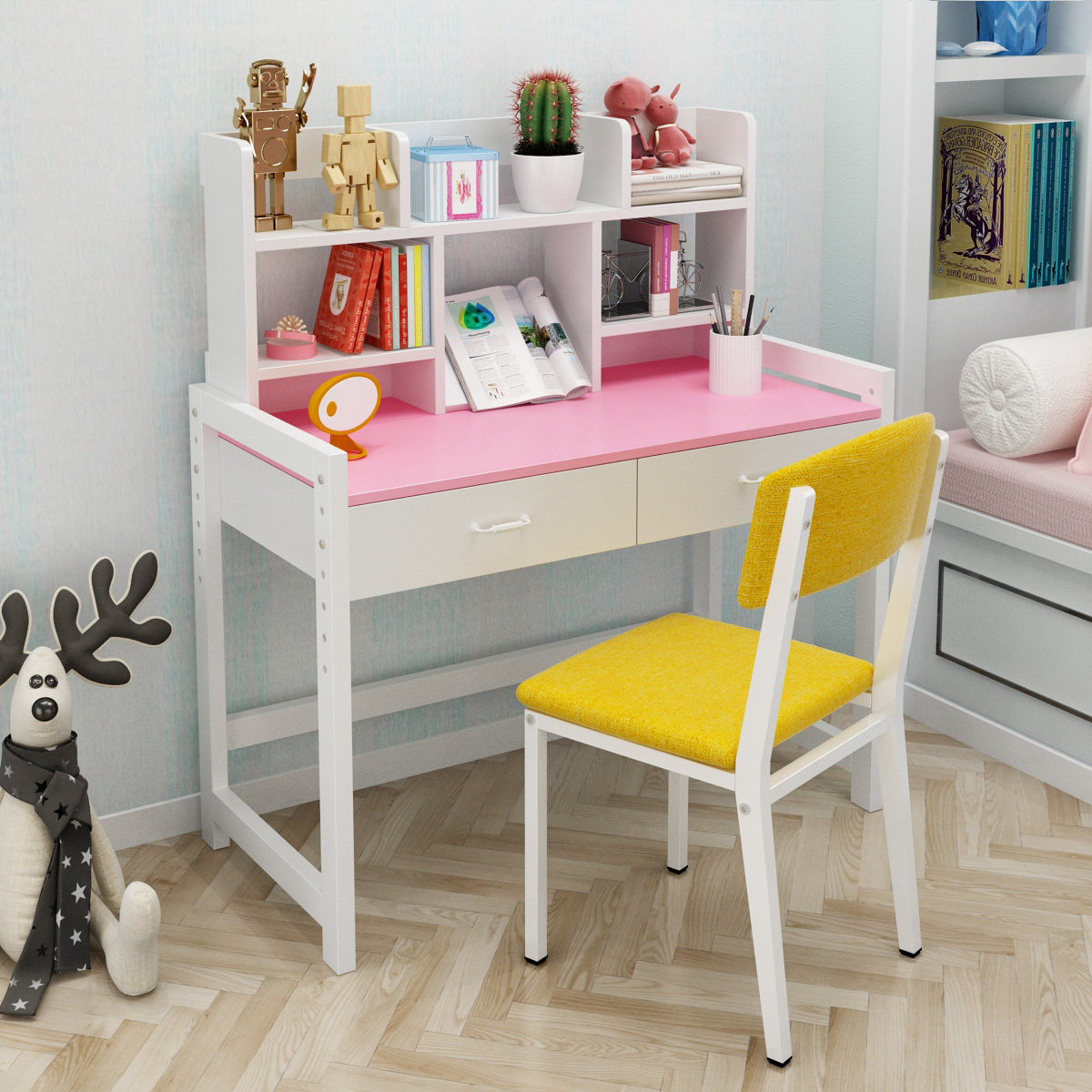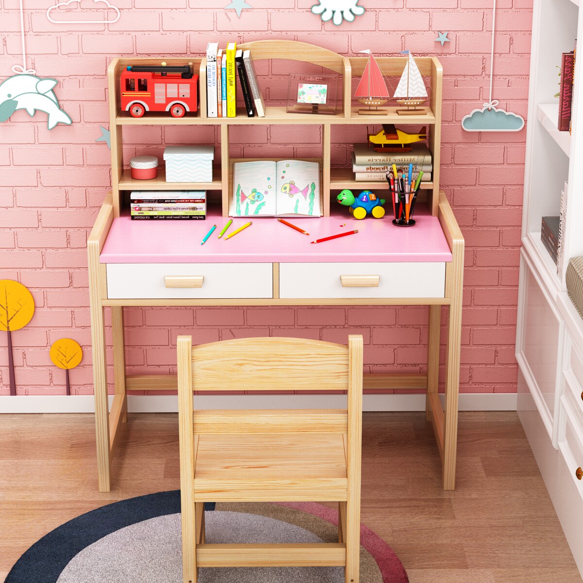 Детский учебный стол твердый деревянный стол может быть поднят и поднял цветовой столик в начальных школах и костюм для стула простые детские рабочие столики