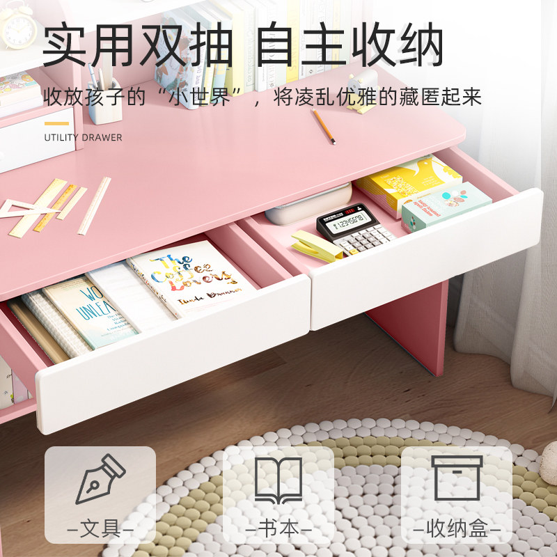 Узнайте настольный стол, поднятый домашний стол, набор учеников начальной школы и стул мужчин и девочек, пишущих домашние работы в письменном виде.