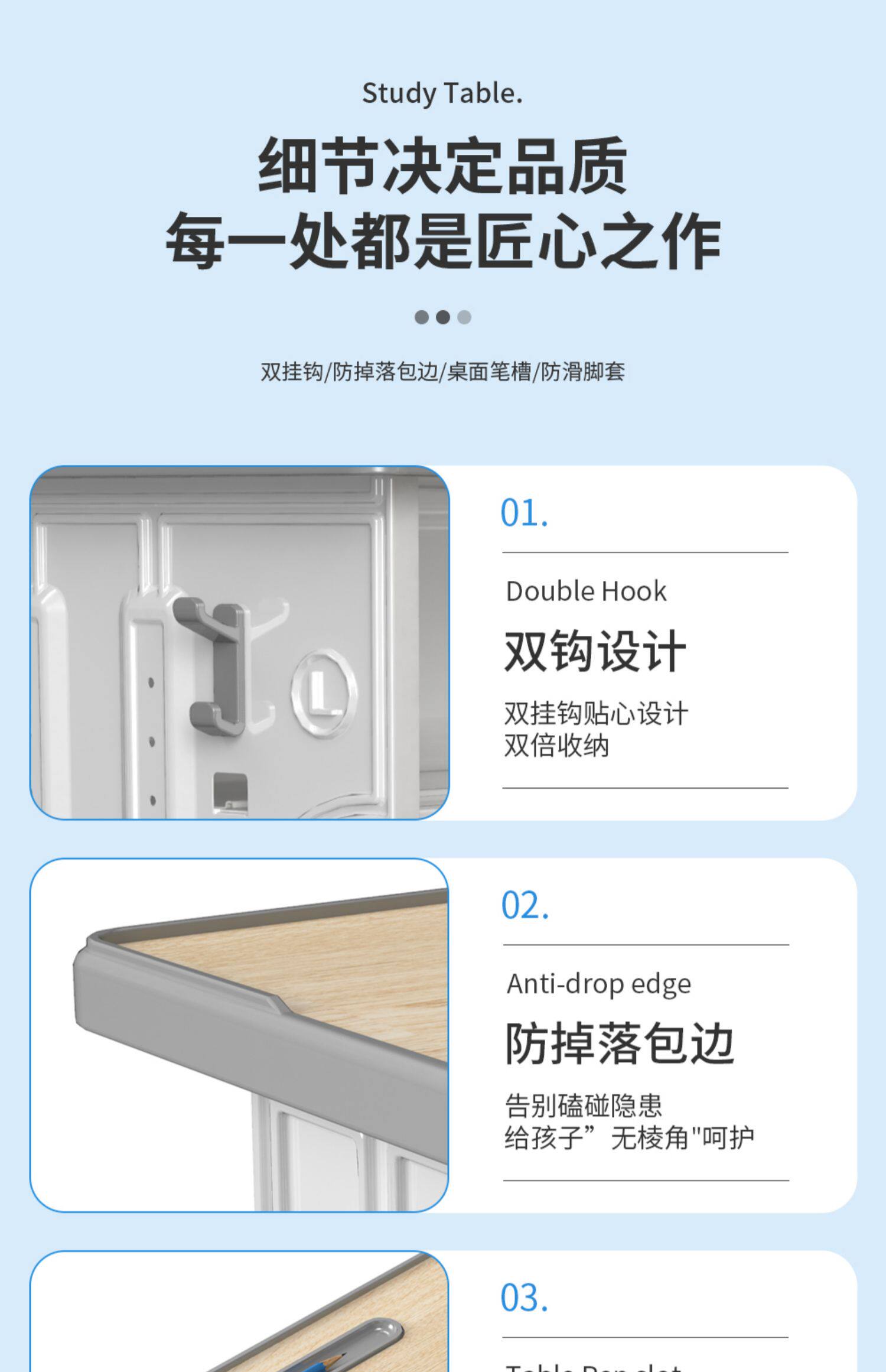 - Двойные двойные столы и стулья с двумя двойными столами и стульями-та же школа (деревянный голубой край 60*40 см.