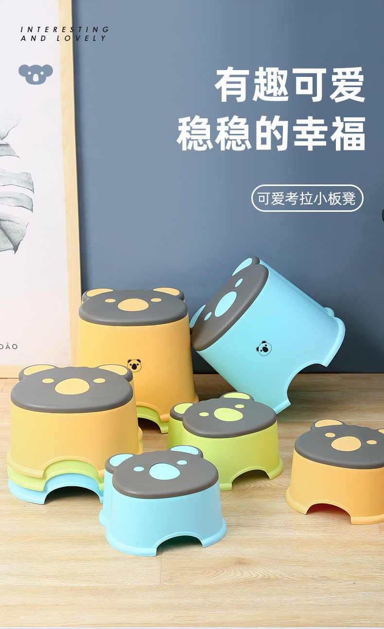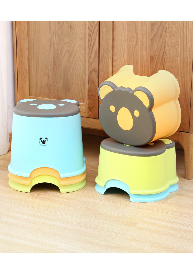 Маленький стул Домохозяйство Пластическая загущенная творческая скамья Дети Симпатичный ребенок, наступающий на низкий табурет, чтобы принять ванну Коала, смену обувные табуретки