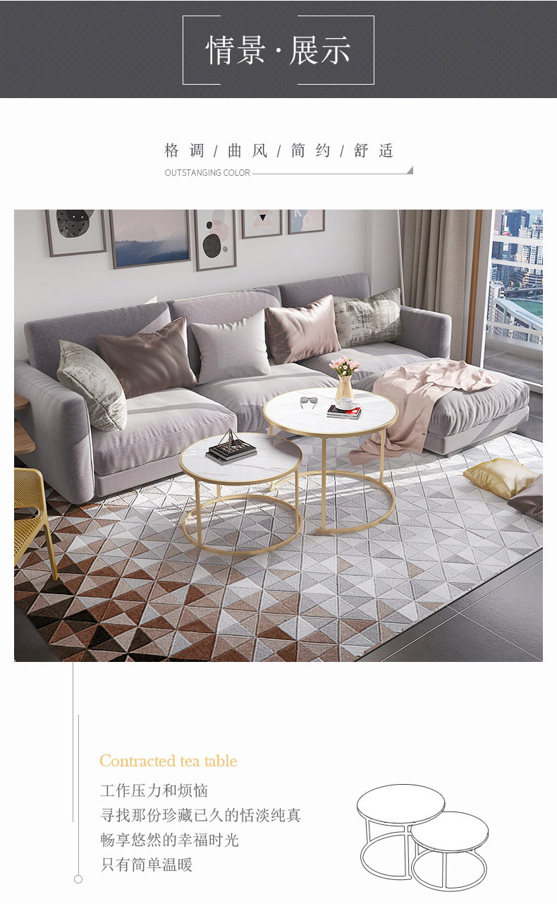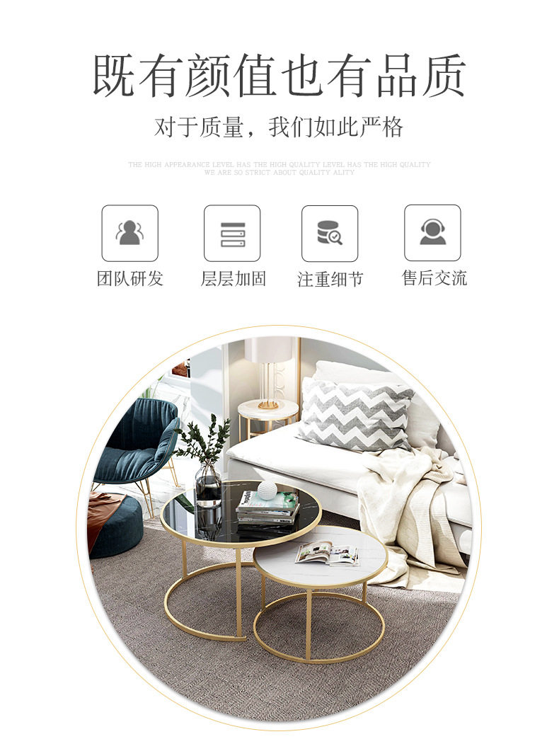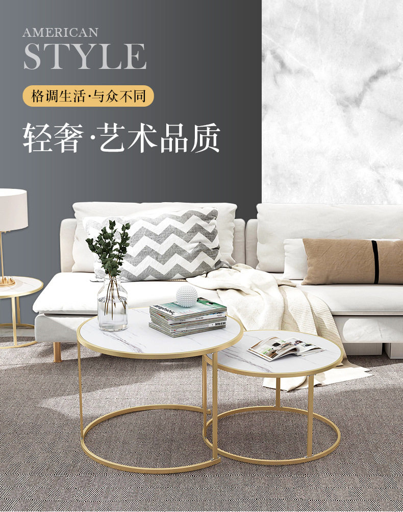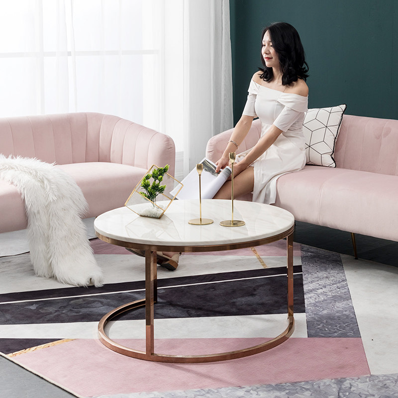 Скандинавский свет, роскошный диван с имитацией мрамора, журнальный столик, маленькая квартира, гостиная, простой современный металлический круглый чайный столик, комбинация