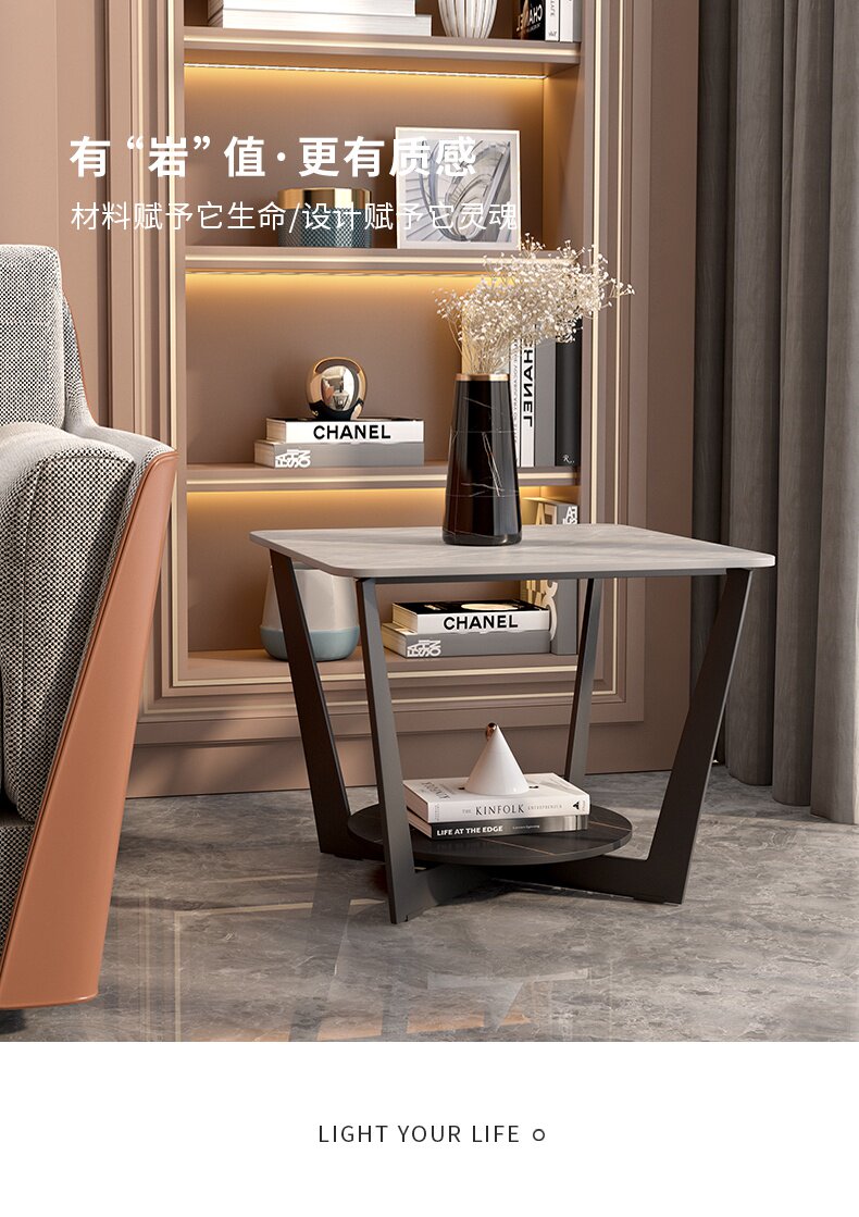 Северный диван, несколько шкафов Легкие роскошь, простая роскошь, простая гостиная, прикроватная шкаф, каменная тарелка, таблетой железный круглый дом кофейный столик
