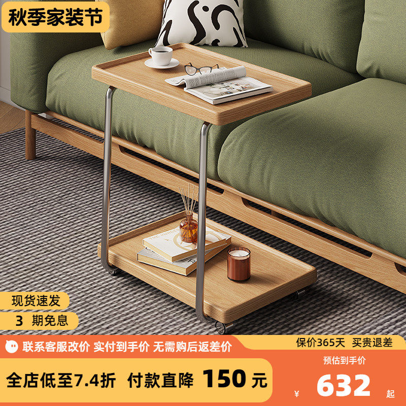 Скандинавский диван, С-образный приставной столик, простой, для небольшой квартиры, гостиной, приставной столик из массива дерева, двухслойный съемный журнальный столик с колесиками для хранения вещей