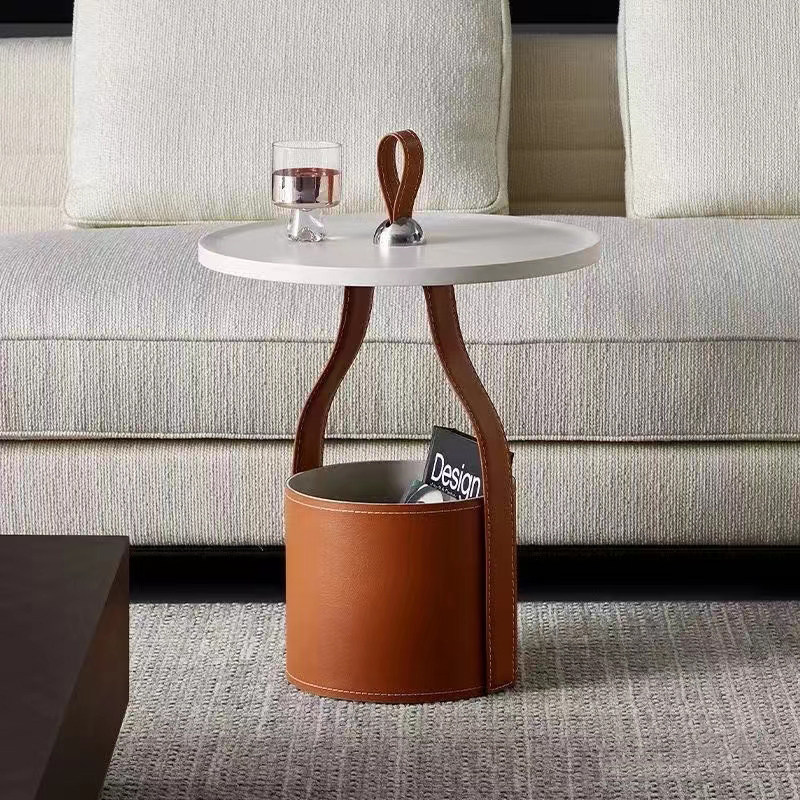 Приставной столик к дивану, небольшой мобильный круглый журнальный столик, кожаная прикроватная тумбочка в спальне, дизайнерский угловой столик для хранения вещей на балконе.
