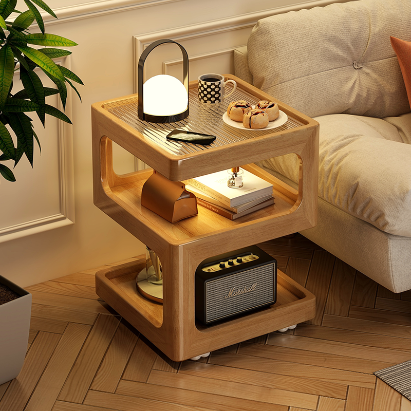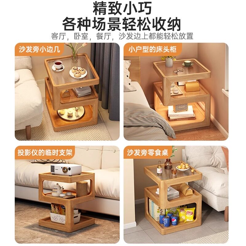 Приставной столик из массива дерева, диван, боковой шкаф, гостиная, передвижной журнальный столик, простой креативный столик, прикроватная полка для хранения в спальне.
