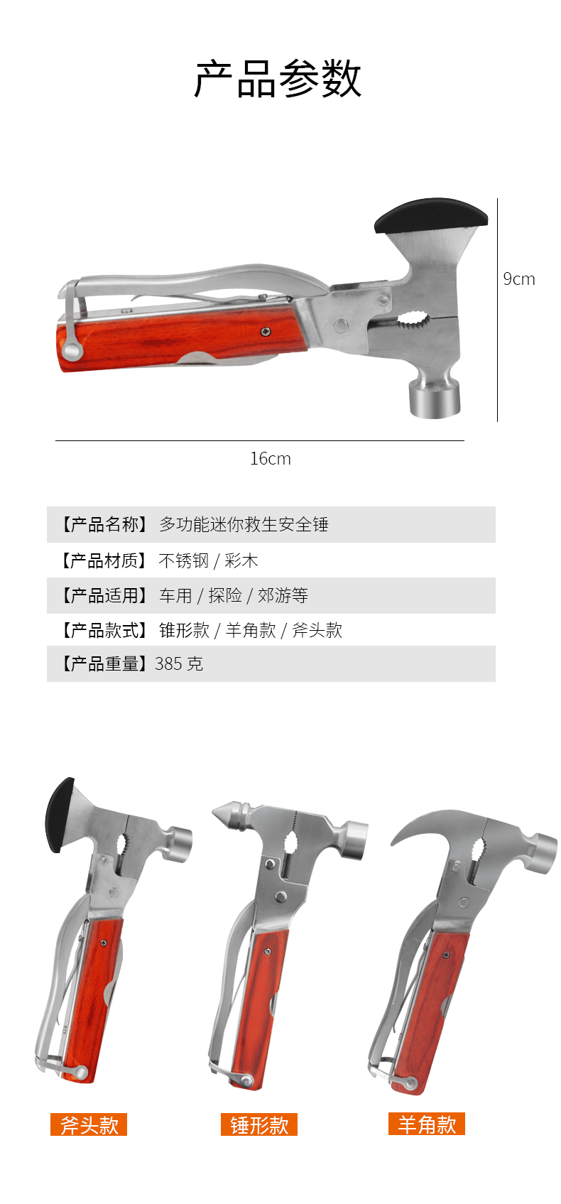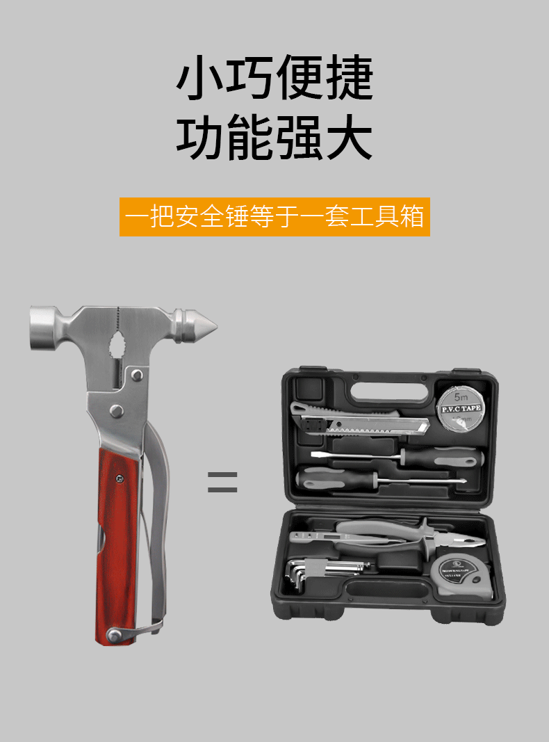 Автомобиль 13 Bidth -Multiple Conevant Hammer All Steel Sall Salcid 13 Функциональный автомобиль безопасно защитный молот Коническое молоток