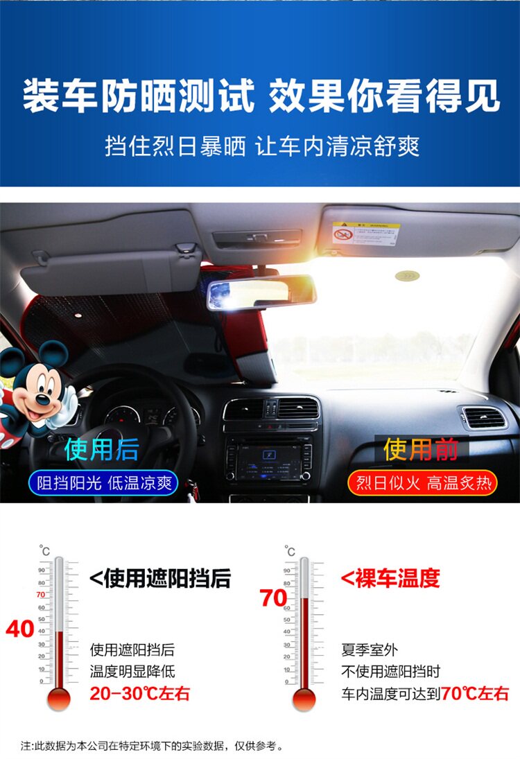 Солнцезащитный крем для автомобиля Диснея и тепловая изоляция перед ветровым стеклом, блокирующей стеклянную экранирующую доску автомобильной доски, солнечный файл из легкой прокладки лето