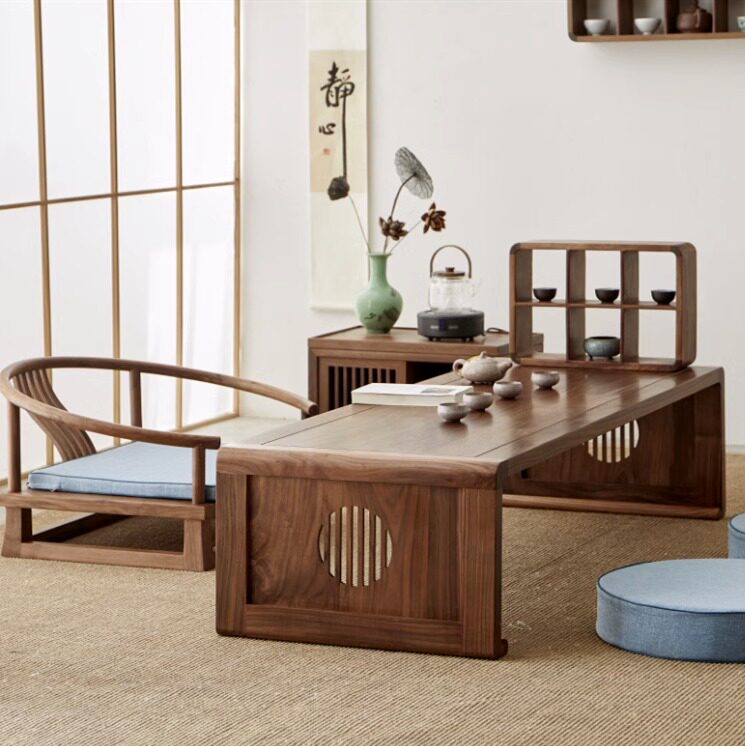 Новый китайский вязал с твердым деревом балкона татами черный персиковый чайный стол журнальный столик журнальный столик Zen Style Bay Onience маленький стол в японском стиле