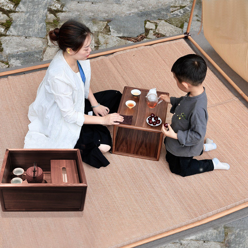 古木生花 Борьба с заливным стеклом бревен японская сплошная деревянная чайная балкон творческий черный грецкий орех татами карликовый стол