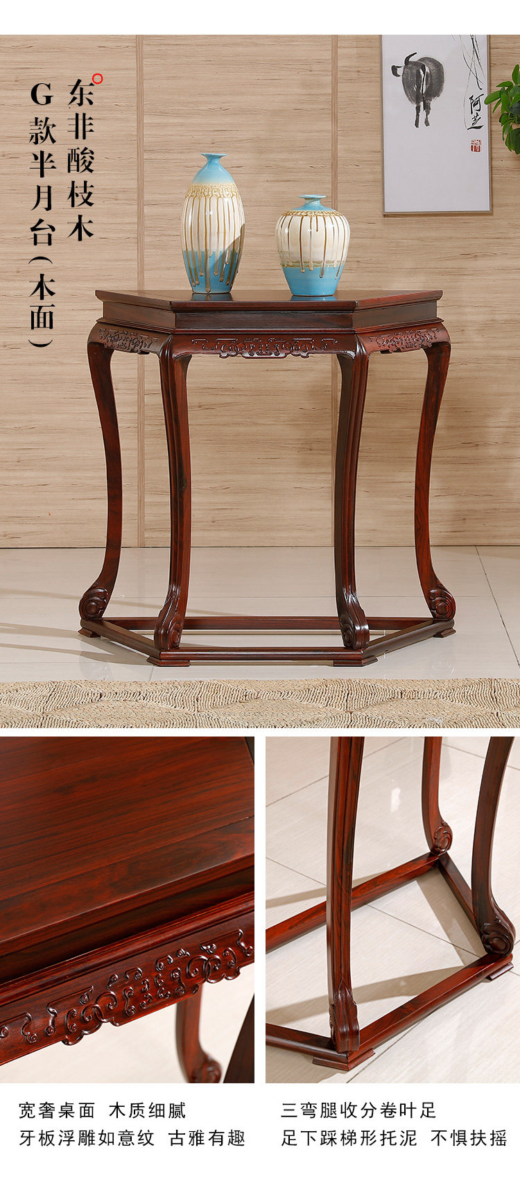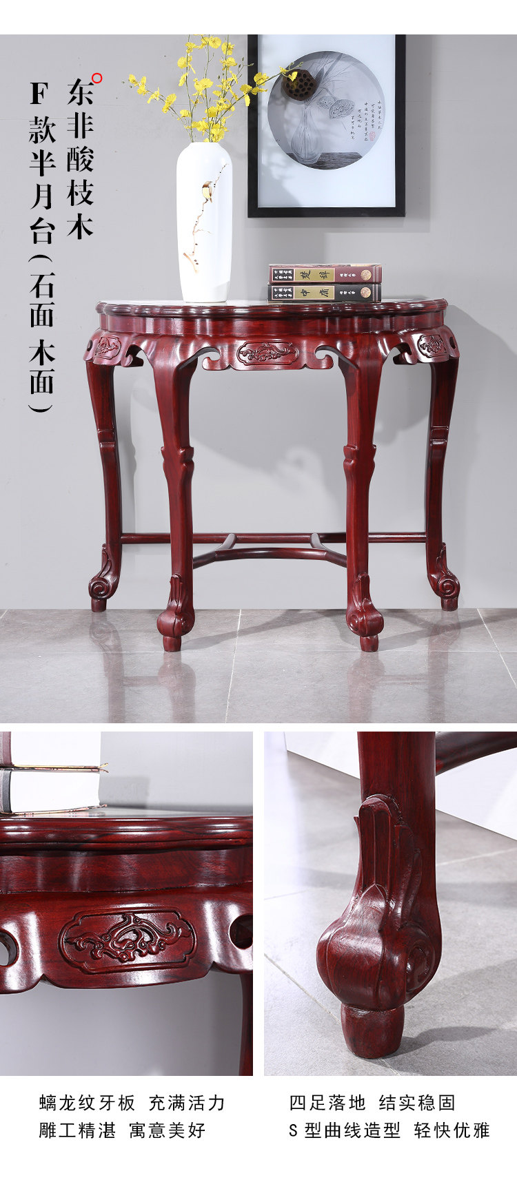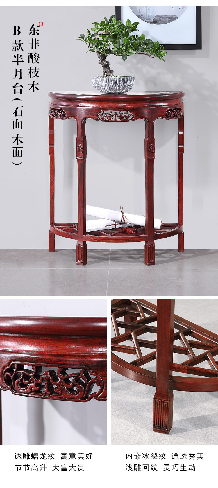 Полу -циркулярные таблицы красного дерева на стене сплошной древесина ретро шкаф для крыльца Новое китайское входное крыльцо Taichung Полубы