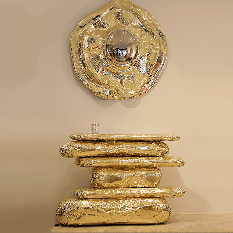 Необычный латунный входной столик, современный светлый, роскошный, декоративный стол для входа в виллу, дизайнерский мраморный входной столик