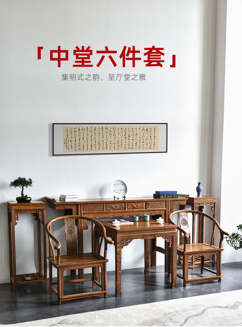 Мебель из красного дерева средняя зал четыре шесть шесть вещей куриного крыла деревянного бара корпуса китайского стиля из твердого дерева для стола в сельских залах в столе
