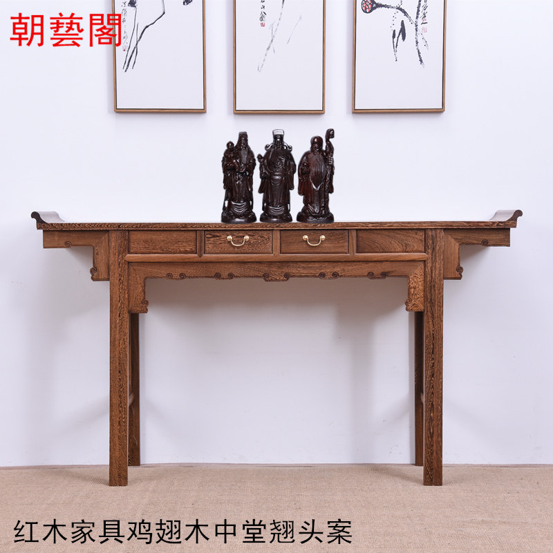 Мебель из красного дерева, приподнятый стол с нефом из дерева куриных крыльев, алтарный стол из цельного дерева с двумя выдвижными ящиками и столик для благовоний.