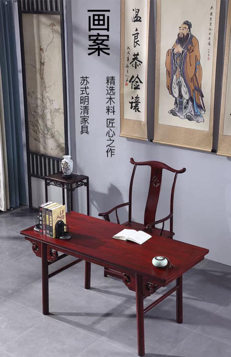 Мебель из красного дерева Африканская кислое деревянные ветви и живопись в стиле Ming Официальные шляпы Нарисуйте стол, написание тайваньских университетских хижин