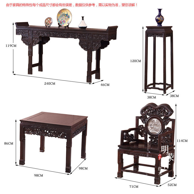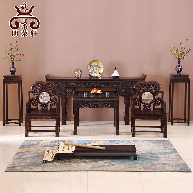明荣轩 Mahogan Midtique Sky Solid Wood God Taichung Ming и Цин Древнее анти -формирующее столовое корпус комбинация стула Ganoderma