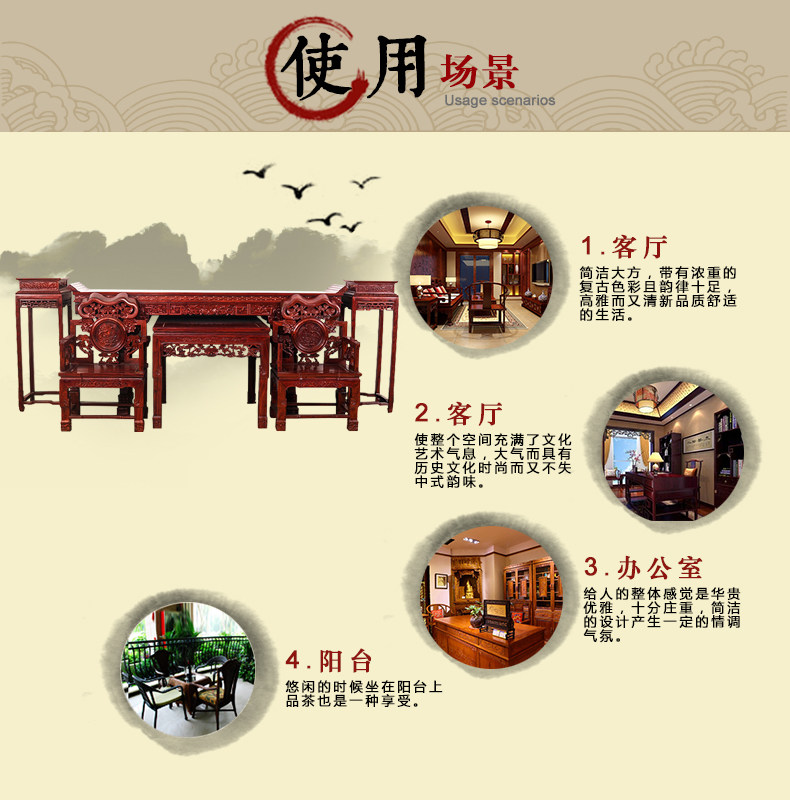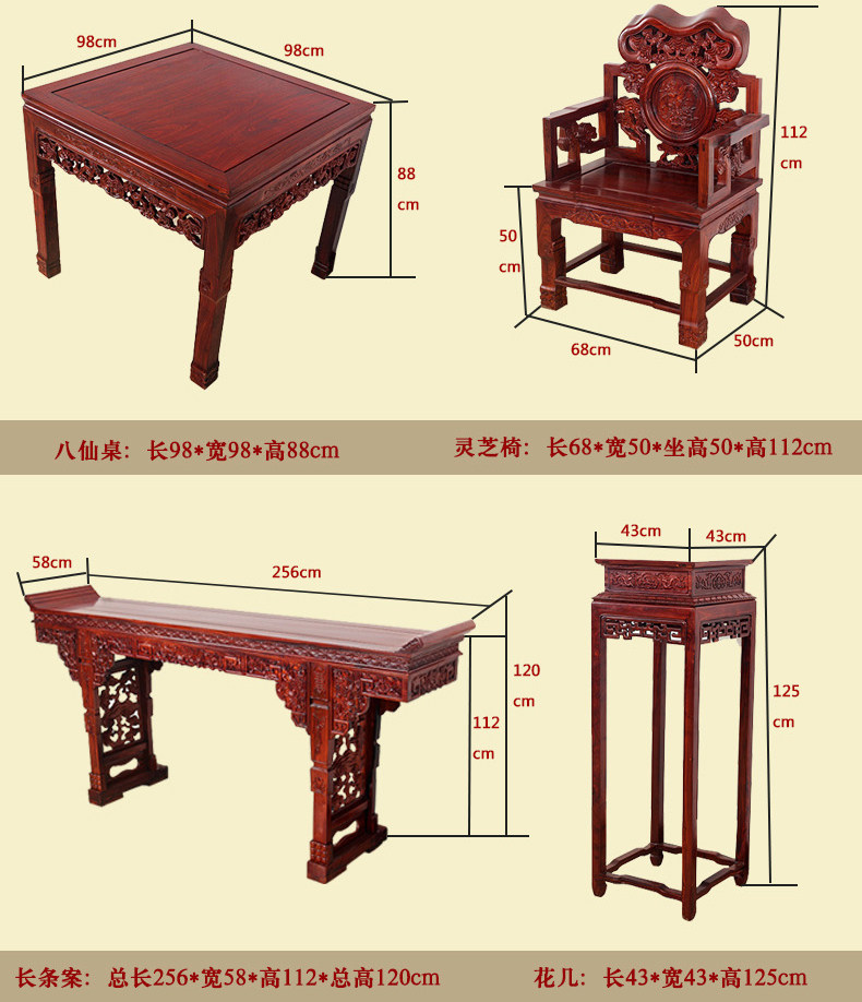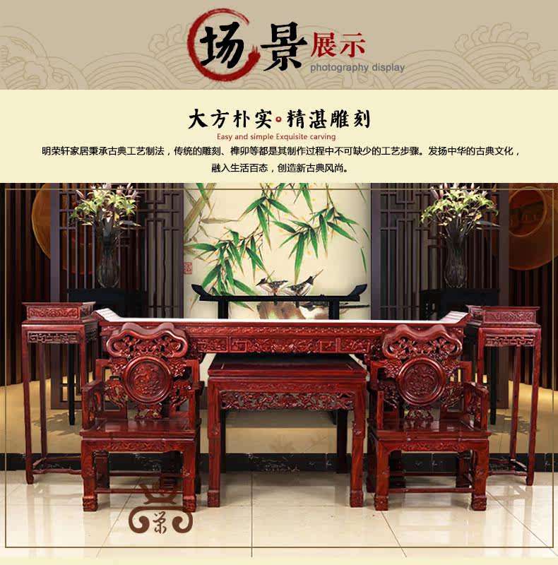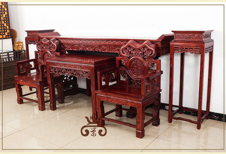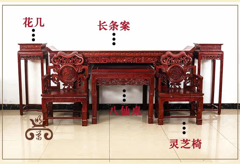 明荣轩 Мебель из красного дерева китайский стиль сплошной древесина листовой красной сандаловой дерево шесть -набор бабских столов Ганодермы Комбинация баров