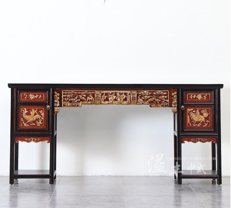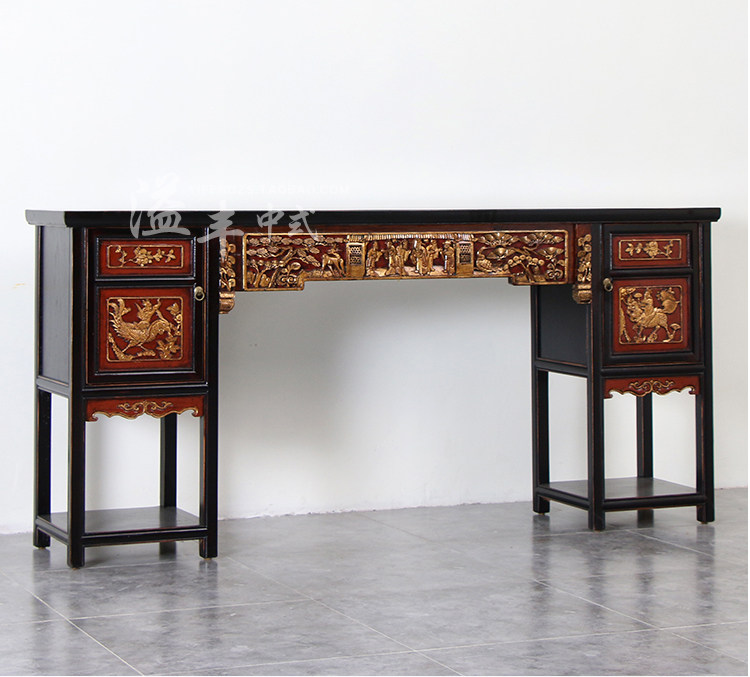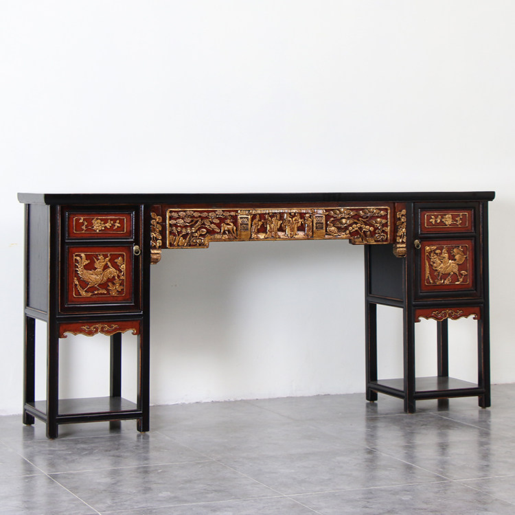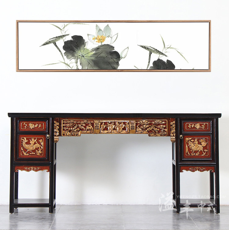 Династии Мин и Цин Древние деревянные резьбы головы головы головы головы головы Тайчунг старого ретро -хранения платформы буддийского стола на крыльце хранилища.