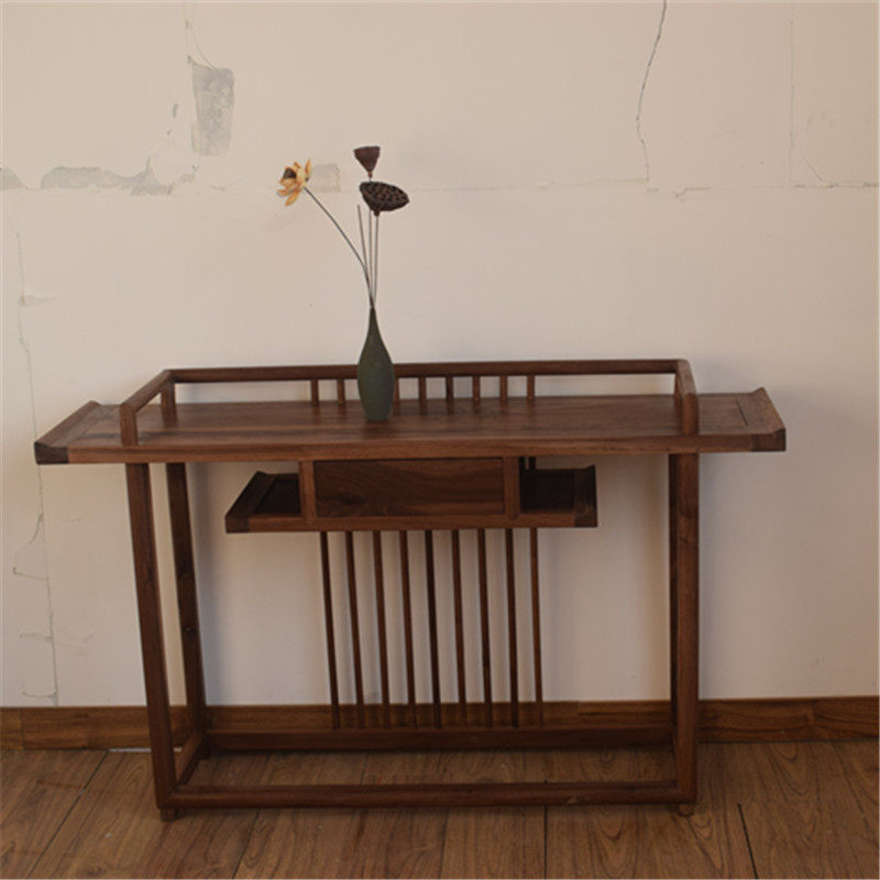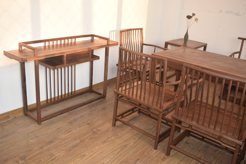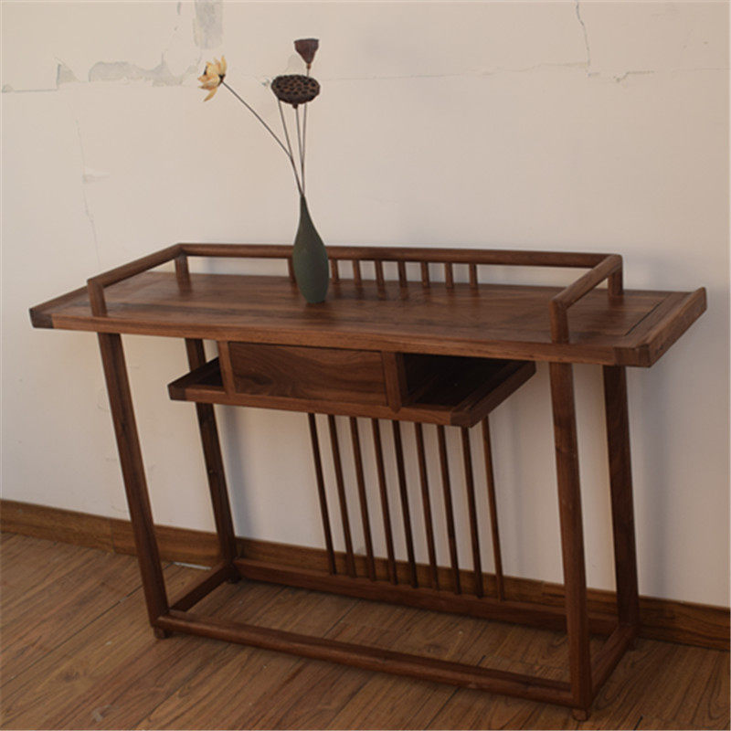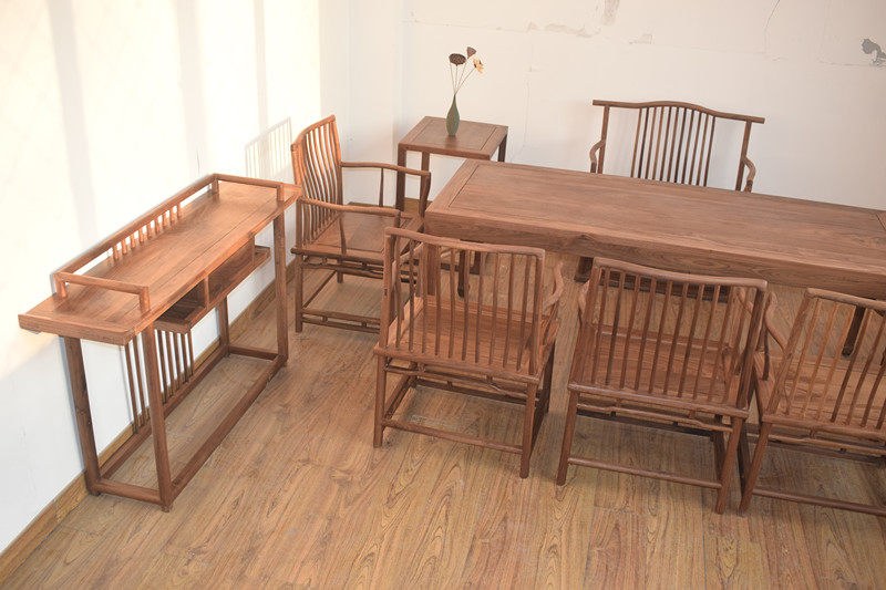 Новый китайский стиль краски без краски Черный ореховый орех Дерево для сплошной древесины и терна -конструкция крыльца Стол корпуса современная минималистская мебель