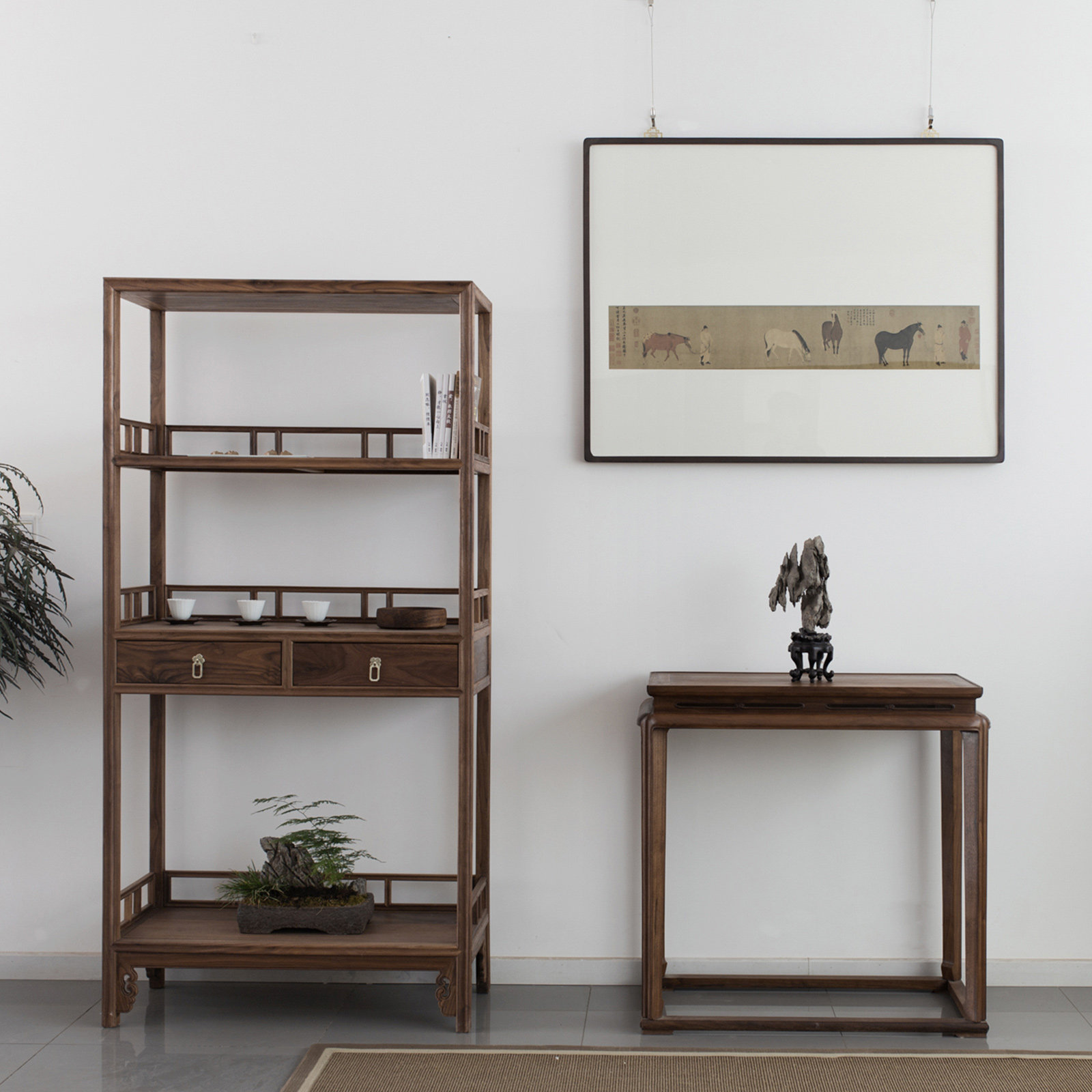 Новый корпус с твердым деревом в стиле китайского стиля представляет собой несколько случаев стола в столе в столе.
