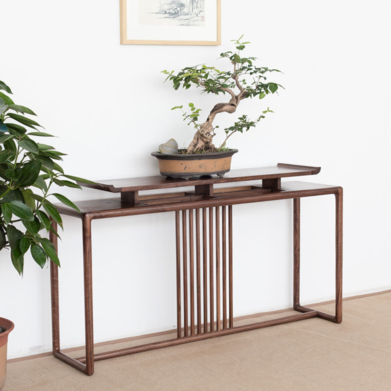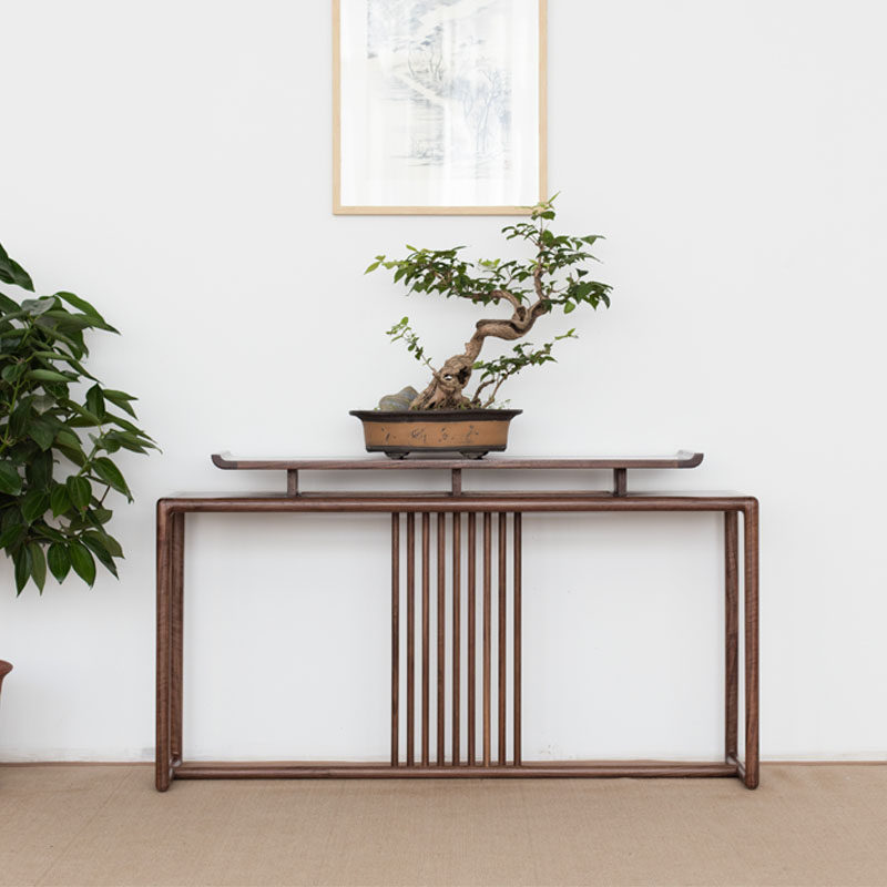 Новый китайский китайский черный деревянный ореховый ореховый ореховый деревянный корпус Muji Yuan в столе крыльца стола с простой дзен -бар корпус старой полосы вяза