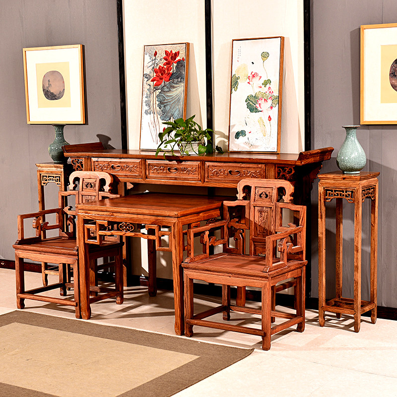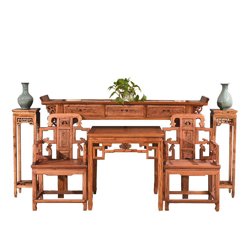 Zhongtang Six -Piece Four -Piece Solid Wood для Taishen Tainan Elm Elm Master Chair восемь бессмертный стол в стиле китайского в стиле