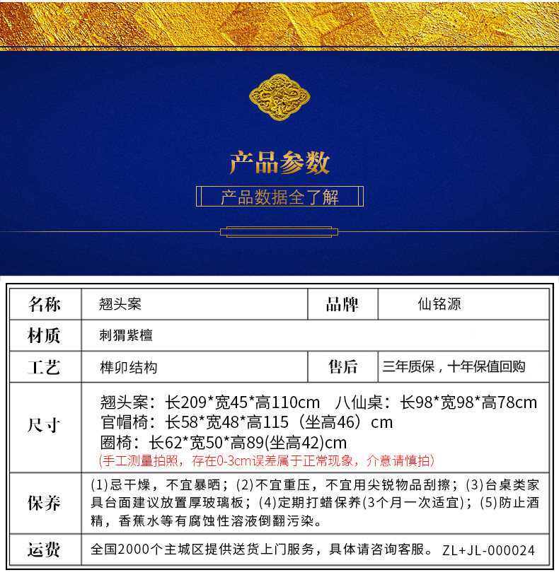 仙铭源 Мебель из розового дерева палиса Розовойвуд Средний зал Шесть -Плазма ежика