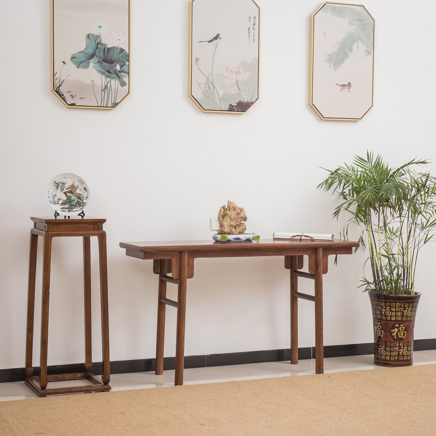 Новый китайский шкаф для шкафа с твердым деревянным шкафом имитируется древними фойями дома, современная простота мебели в вязке буддийский стол для стола Shentai
