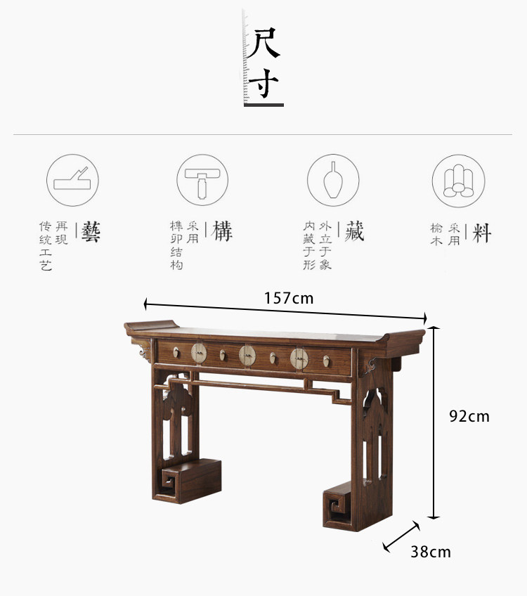 Новый китайский велосипедный чехол All -Solid Wood Classical Table Xuangan Door Hall Strip Несколько шкафов гостиной гостиной старый стол