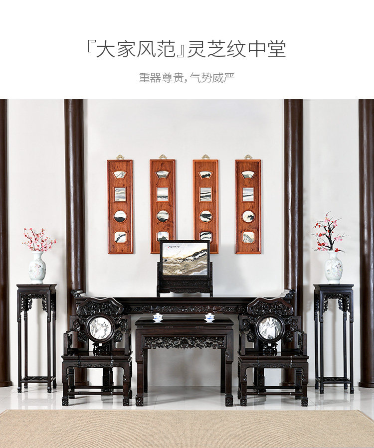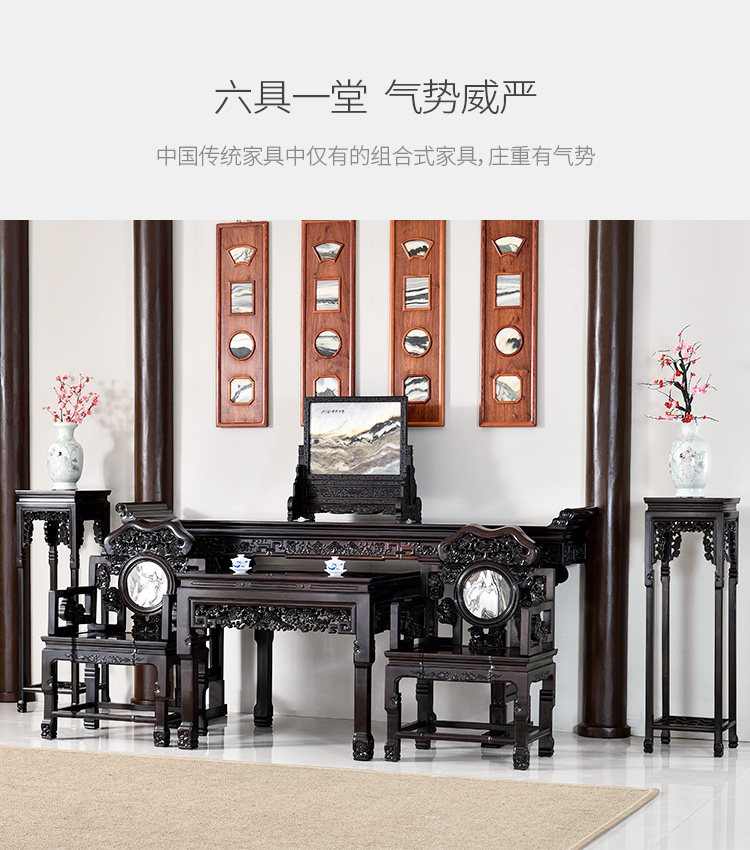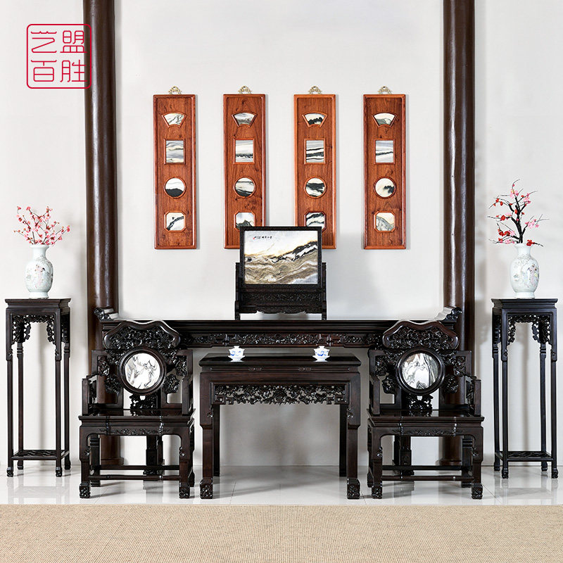 艺盟百胜 Шесть наборов китайских средних залов красного дерева в восточноафриканском фиолетовом глобальном корпусе Tanqing для столовой ганодермы резной мебели