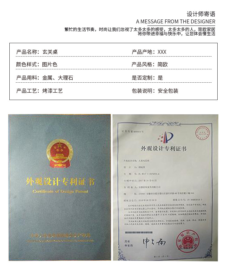 Железный арт Мраморный парк Парк Стол против стены северного современного простого простых коридор крыльца легкий роскошный зал корпус Xuangan