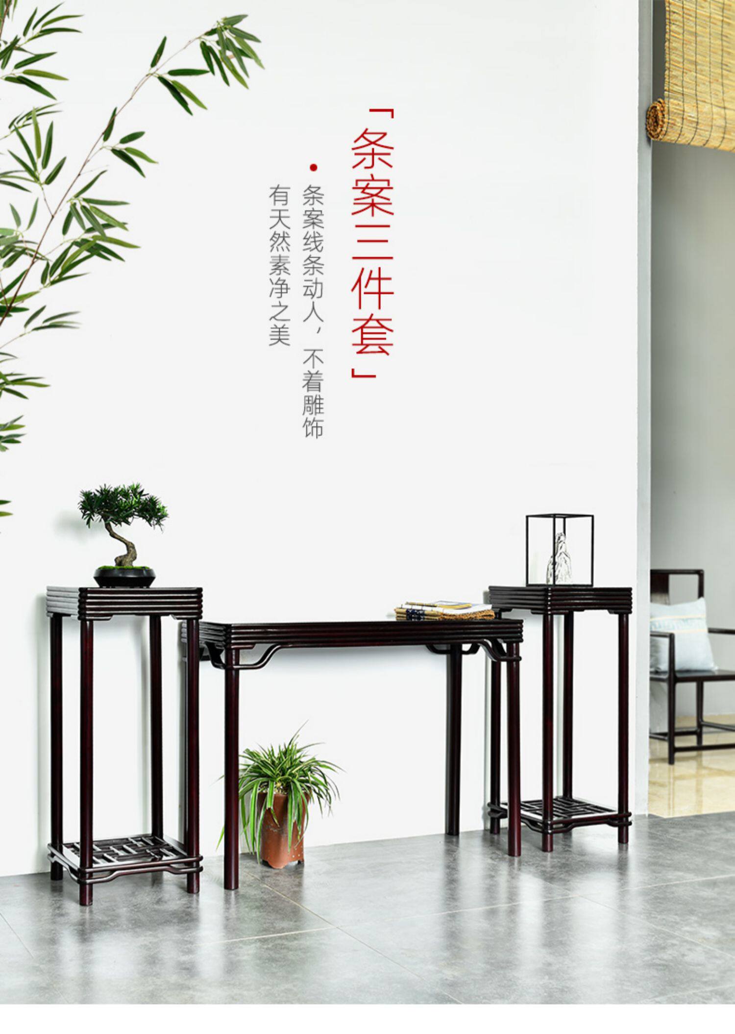 Кровь Сандальт Средний зал Трехно -частичный набор ярких статей Цветочные стойки Комбинация гостиная мебель из красного дерева с твердым китайским крыльцом для стола