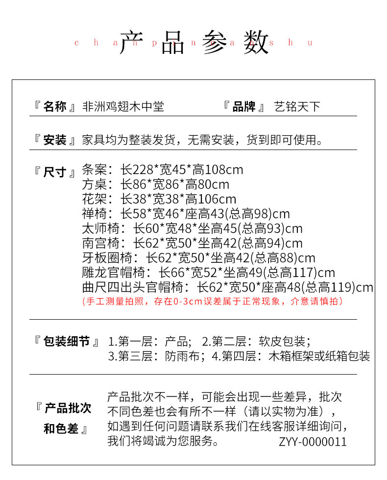 艺铭天下 Mahogan Middle Hall Six -Piece Столковая деревянная мебель куриная крыла