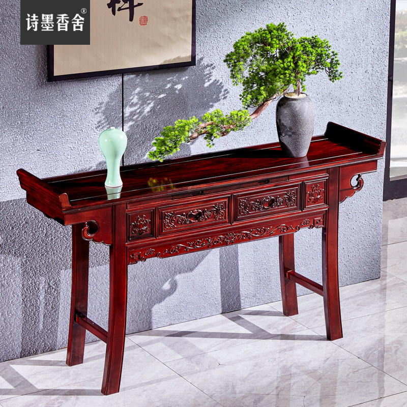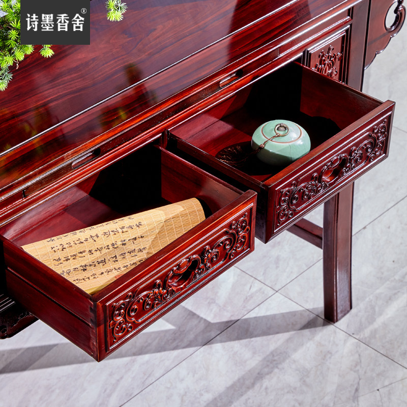 诗墨香舍 Новый китайский классический махогановый мост Танк Кейс Южноамериканский розовый дерево столы с твердым деревом с наклоненной головой для стола
