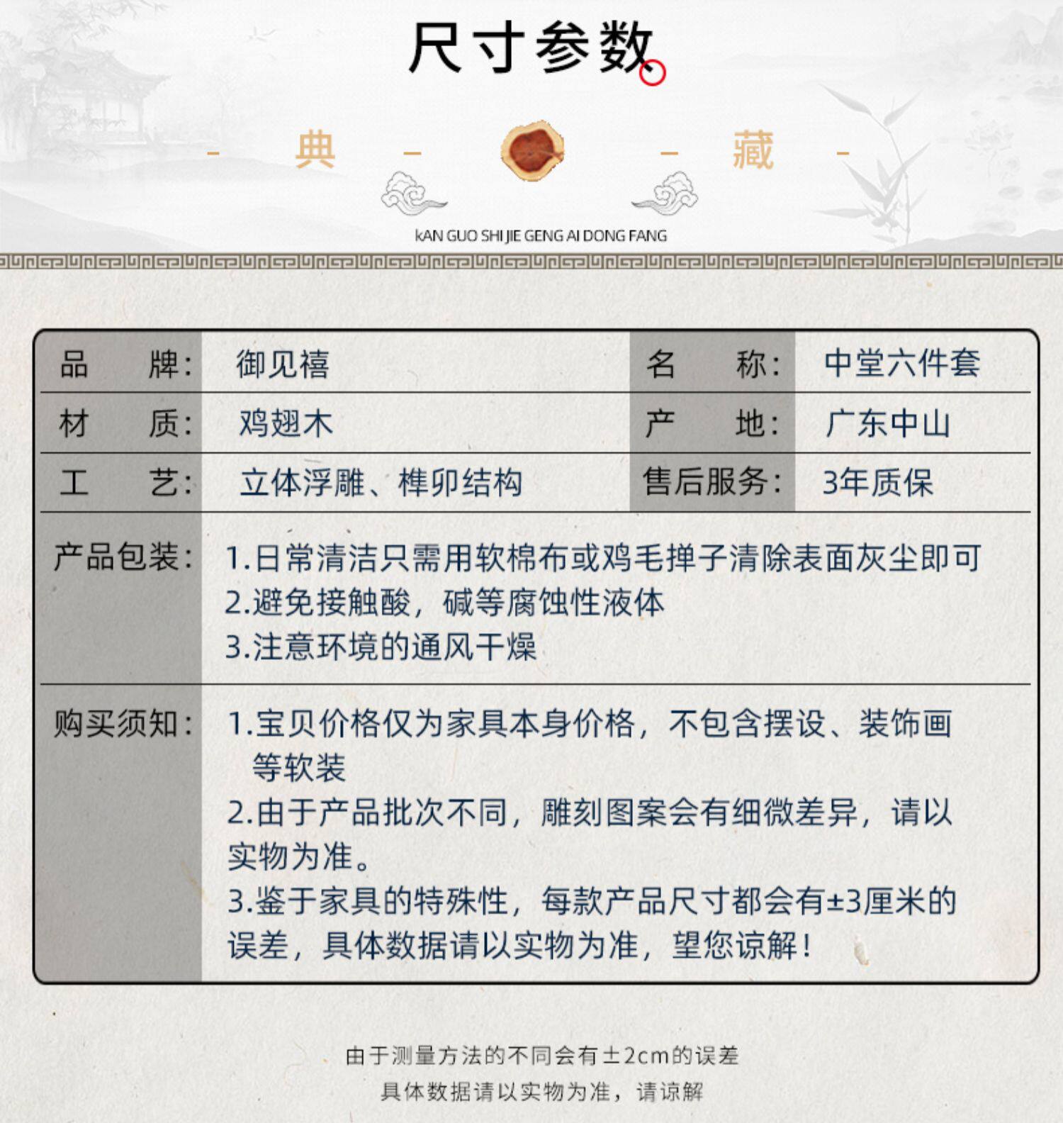 Махоган средняя церковь шесть -китайский китайский куриный крыло деревян