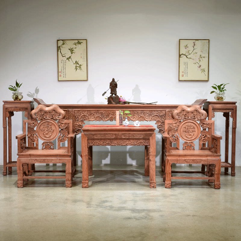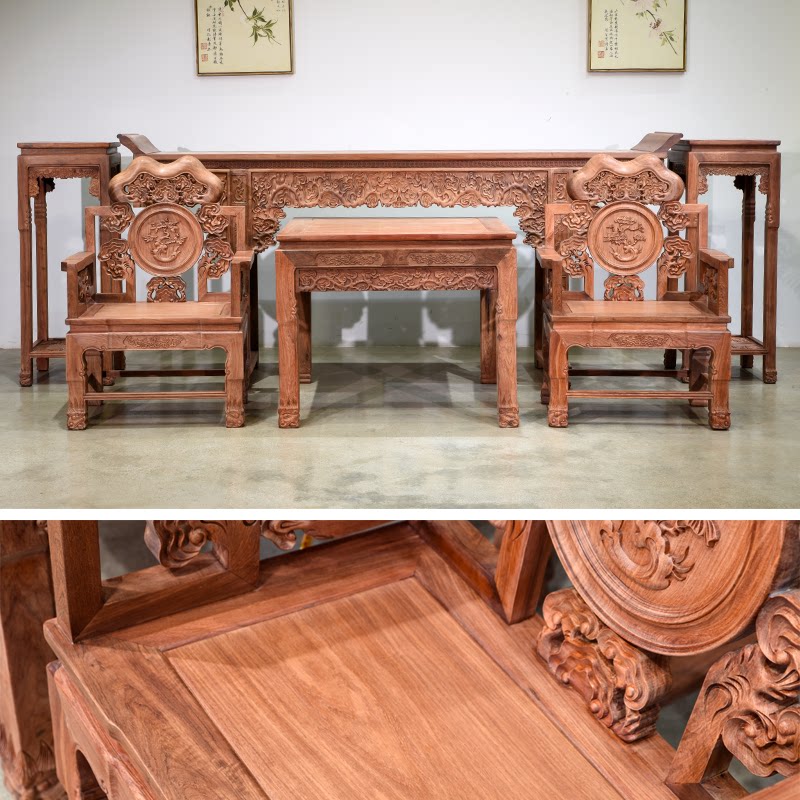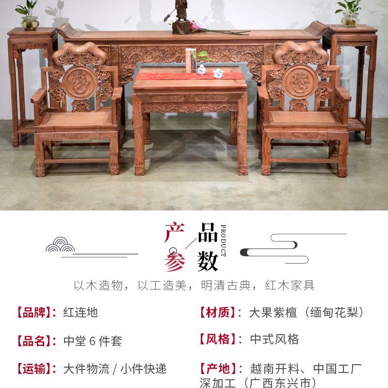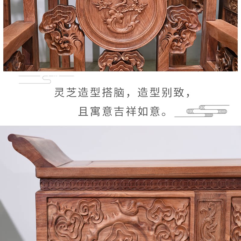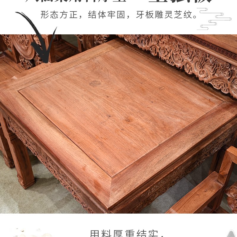 Huali Wooden Ganoderma Lingzhi Middle Hall 6 кусочков сырого деревянного фрезерования с твердым деревом Теноном резной гостиной терраса Mangoshen