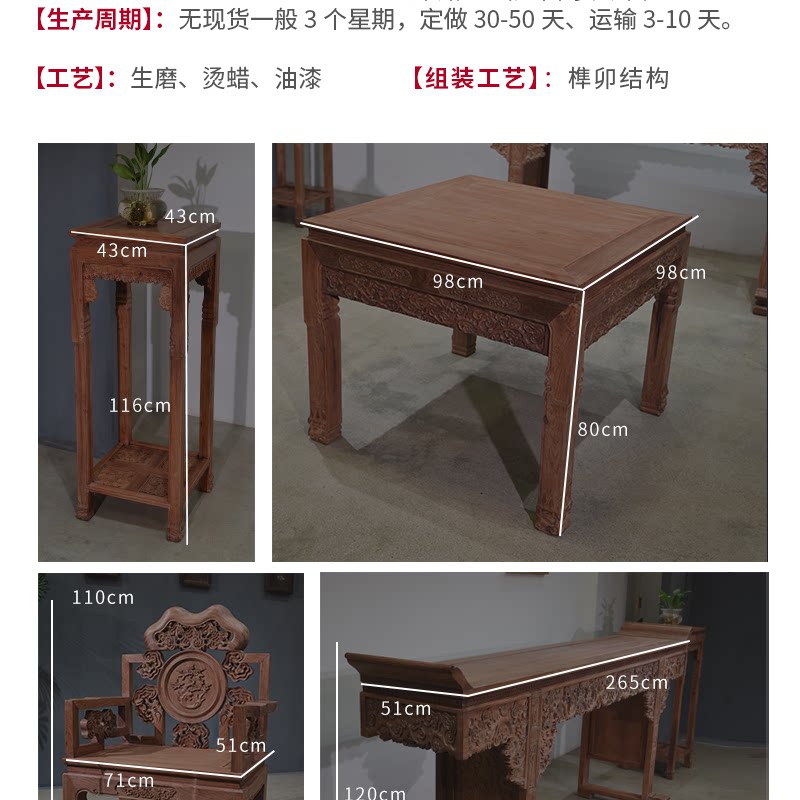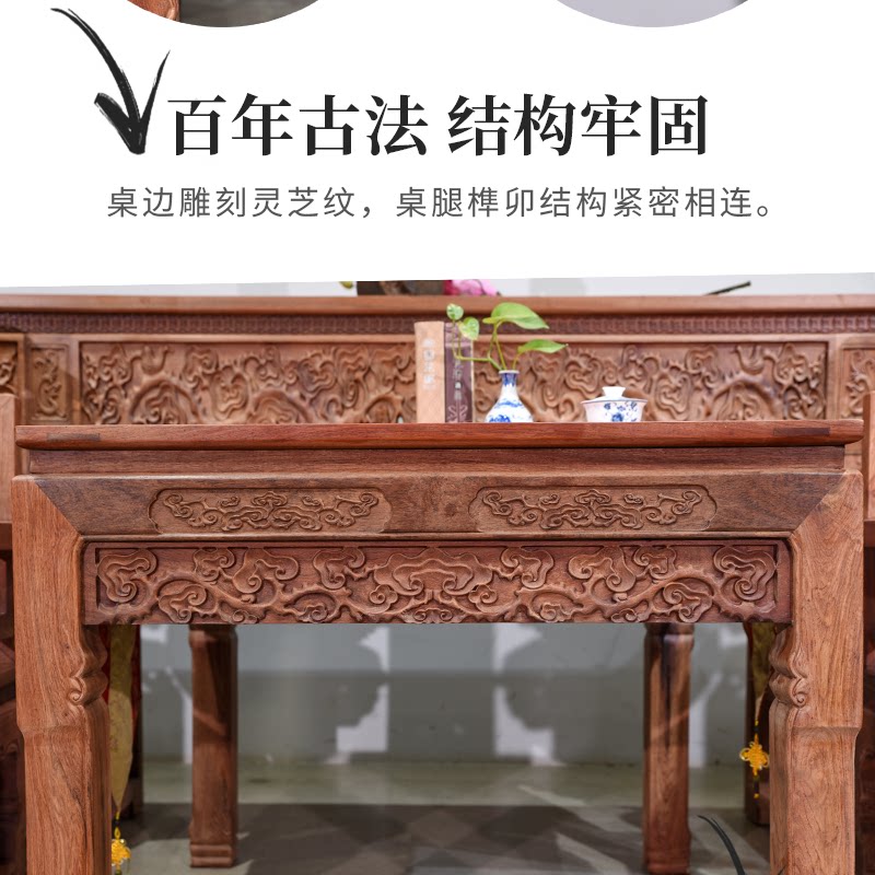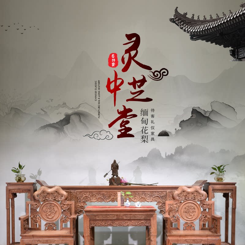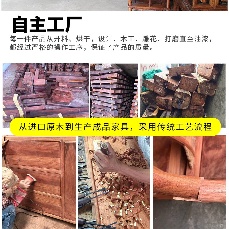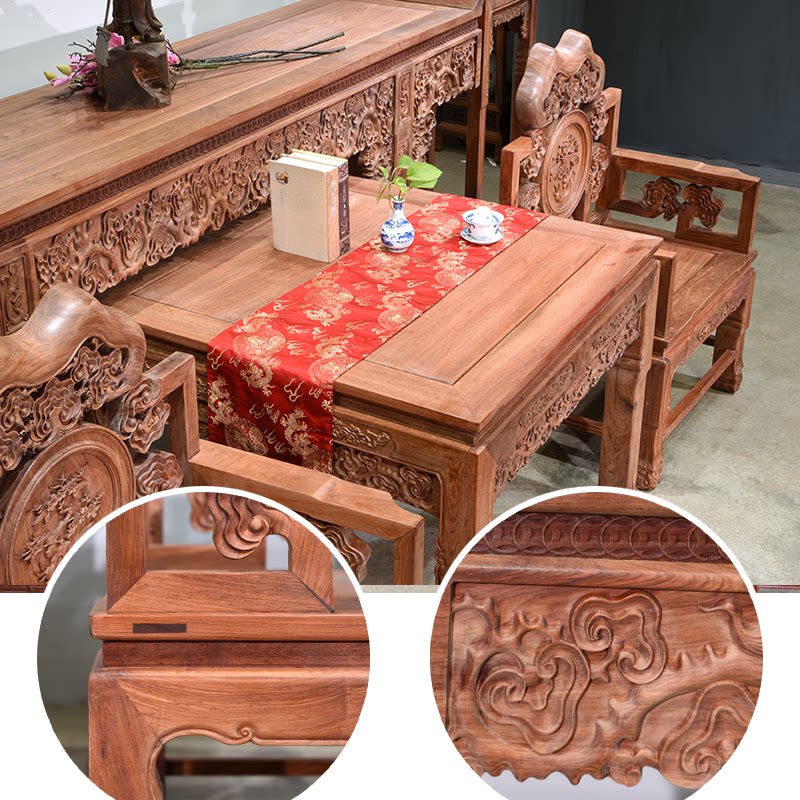 Huali Wooden Ganoderma Lingzhi Middle Hall 6 кусочков сырого деревянного фрезерования с твердым деревом Теноном резной гостиной терраса Mangoshen