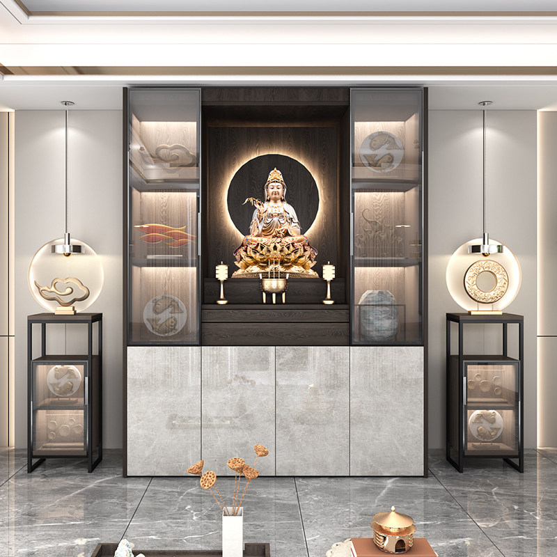 Буддийский антоскоп для стола домохозяйства с твердым древесиной минималистской современной деревней корпус Шентай шкаф Гуанейн Поместите шкаф Bodhisattva Настройка