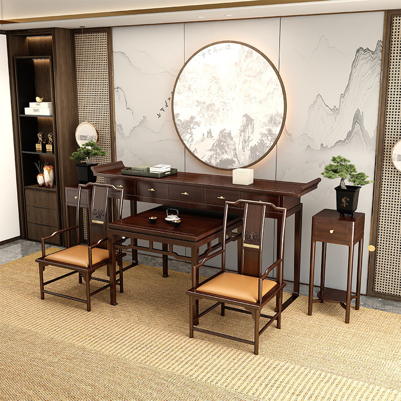 Шесть -шесть набор сплошной древесины в новом китайском крыльце Эбон, шестиэтажный набор из восьми бессмертных столовых гостиной для Shinai Music Three