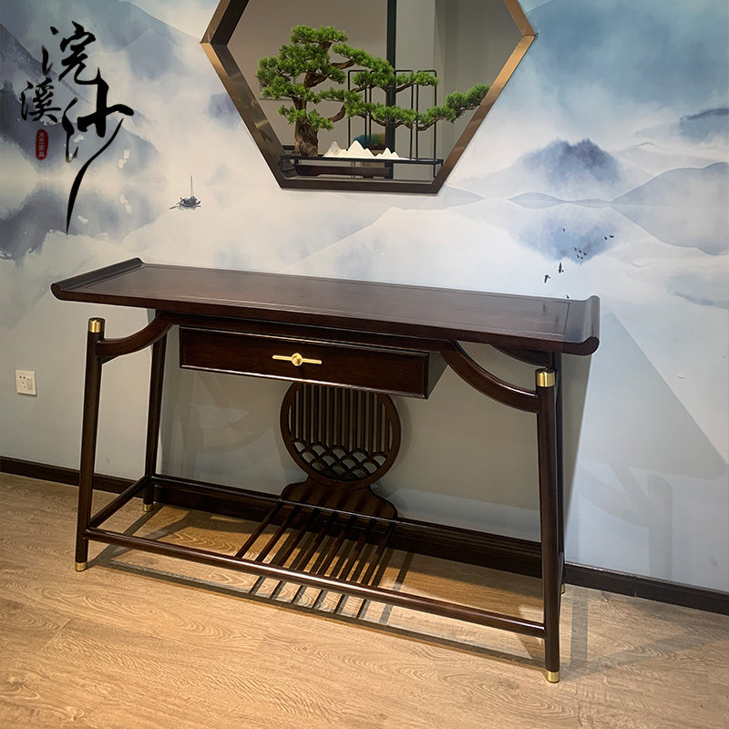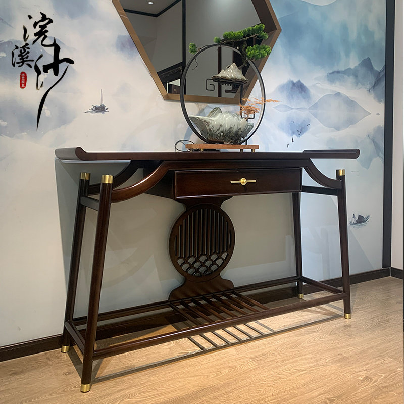 Новый китайский ведущий вход с твердым деревом в крыльцо, настольный компьютер, Meditation Light Luxury Bar, Современное минималистское финал, мебель Jingtai