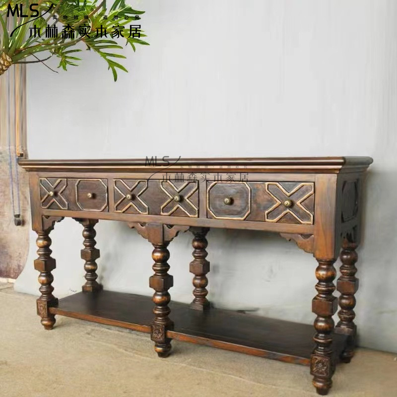 Стиль в юго -восточном азиатском стиле xuangantai Древние и современные бревенчатые мебель ретро твердый дерево вырезанный диван назад