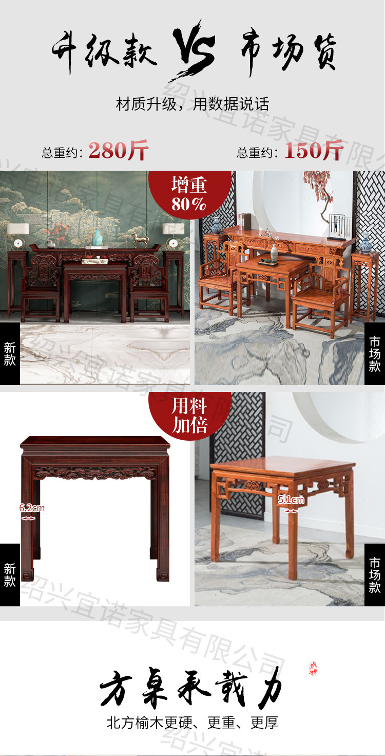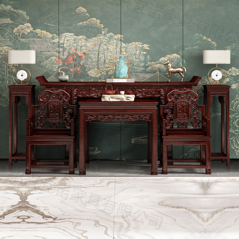 Шести -купюр китайского стиля восьми бессмертный стол для твердого дерева средний зал для сельского зала Холл Дом Случаи Шентай действуют по аромату Длинный стол длинный стол