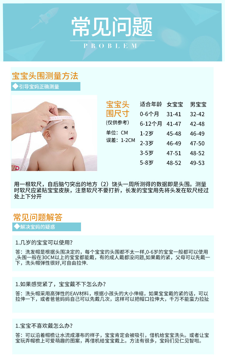 蓝卫士 Детская шапочка для душа для младенца, шампунь, водонепроницаемая шапочка для волос, шапочка для мытья головы