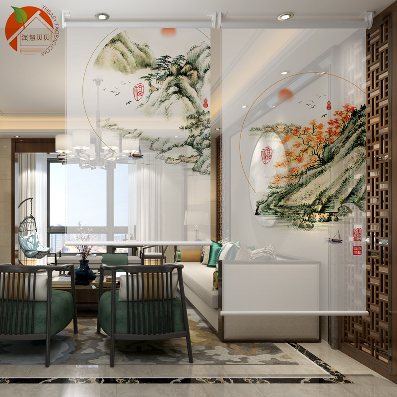 Современный новый китайский стиль домашний штук с мягким экраном крыльцо веранка подвеса, висящая мягкая разделенная занавесная крышка кухни для подъема и подъема