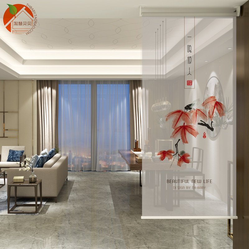 Новый китайский стиль пола -для занавеса -занавеса, катящейся занавески, кластерной шрифт, гостиная.