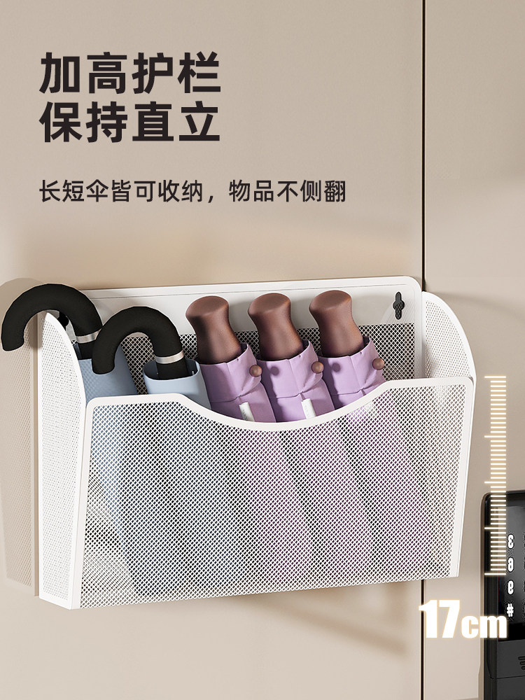 В доме зонтика с хранением используется стойка с зонтиком на полке, чтобы поместить магнитную стену -дверь позади дома и хранить ее в коробке для корзины дома