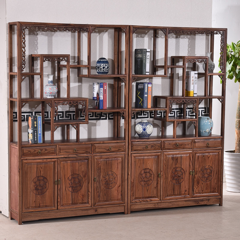 Сплошное дерево Bo Древнее полки Трехвурное три -бодвое книжные полки современные китайские комбинированные