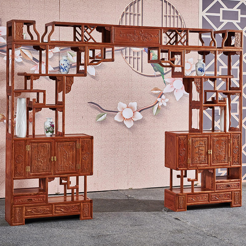 Телескопический древний шельф Mahogawa, ежа Дуобао, Розовойвуд Розовойвуд, розовое дерево, перегородка гостиной лунной пещеры Дверь китайского стиля