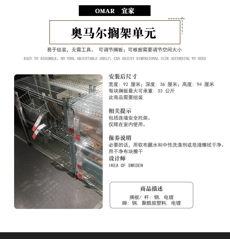 Jinan Ikea nanjing Ikea Домашние покупки Omar Shelf Unit Alloplating хранение хранения хранения нержавеющая сталь.