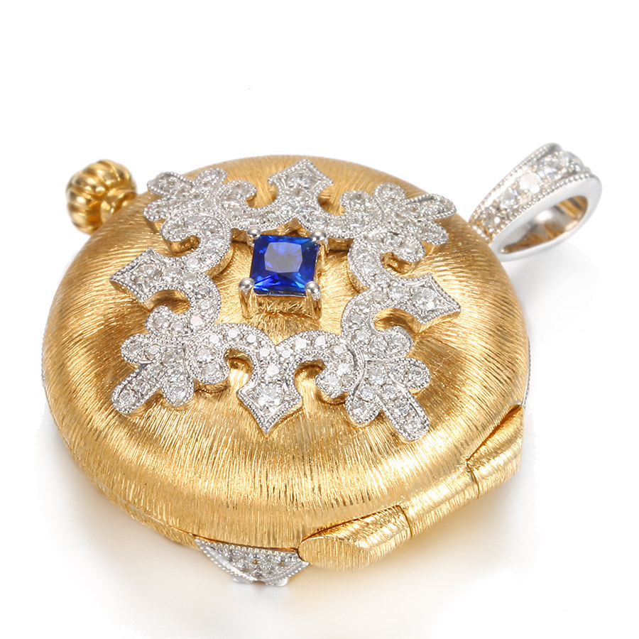 Ювелирное украшение, сапфировая подвеска для принцессы, квадратная фоторамка, бриллиантовая инкрустация камня, с драгоценным камнем, золото 750 пробы, женский стиль