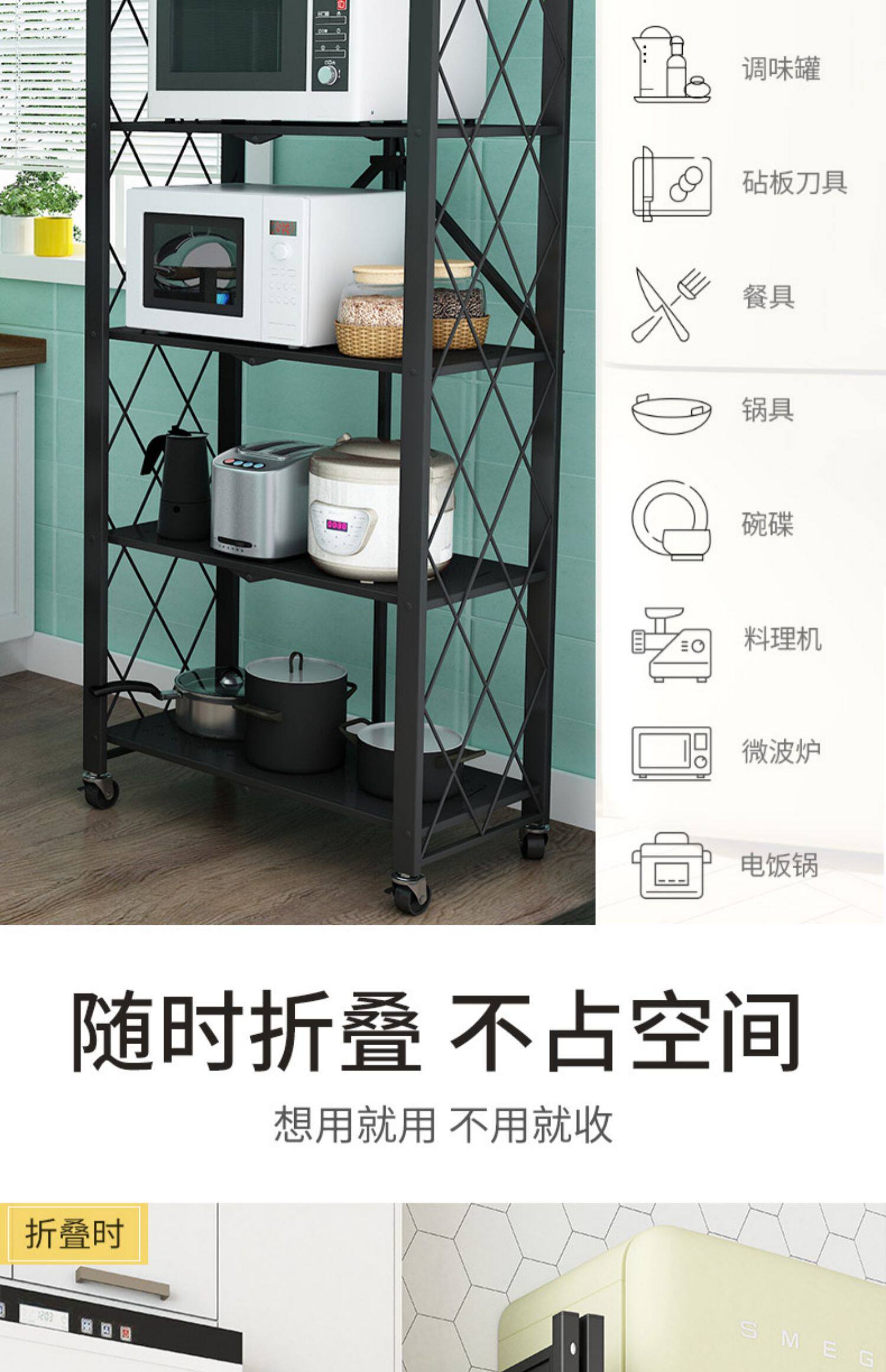 Складные кухонные полки, не требующие установки, напольные с колесиками для домашней гостиной, организация книжной полки и стеллаж для хранения мусора